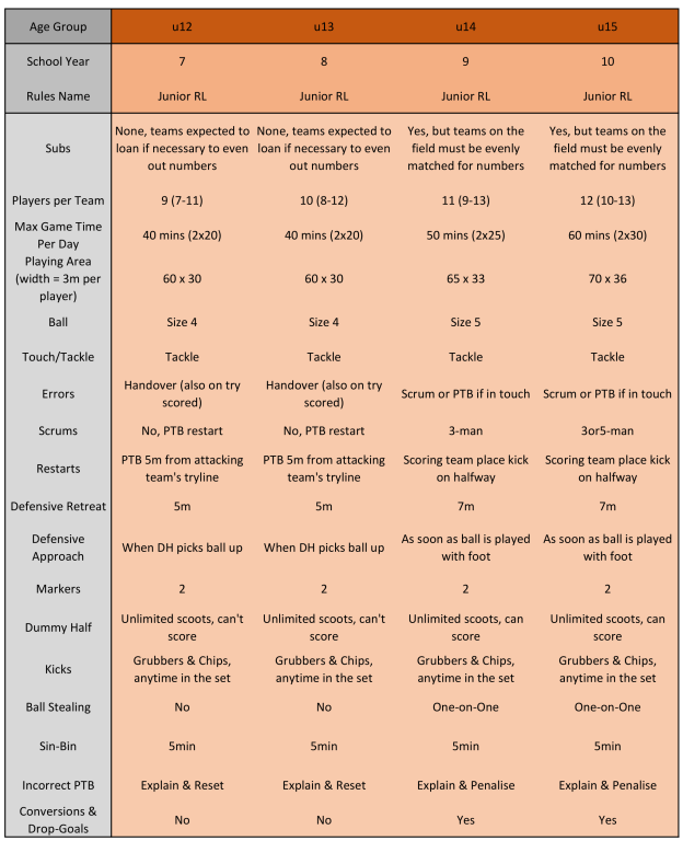 Here is a matrix showing the way we tailor game rules to suit the primary school age groups:
